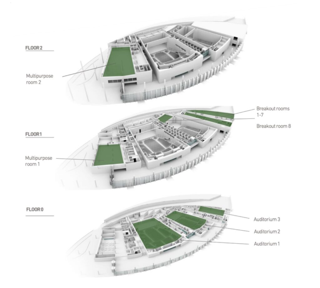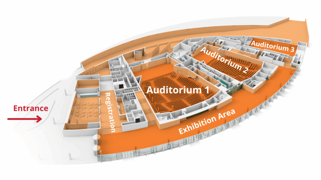 The 9th WoCoVA will mostly take place on the ground floor of the Congress Centre. On this floor you will find the registration desk, 3 auditoriums and an exhibition area. The GloVANet Pavilion is situated on the first floor in the multipurpose room 1, here you will find the poster presentations and the stands of National Vascular Access Societies. To access the building you can take the primary entrance.