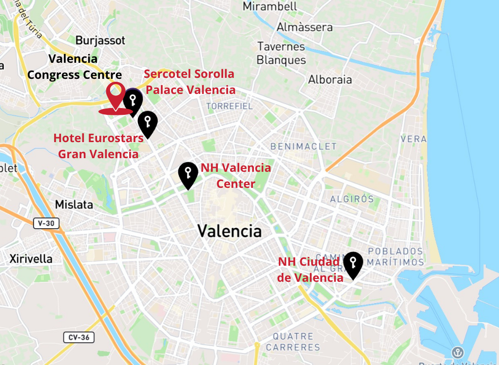 Attendees of the 9th WoCoVA have to arrange their own hotel reservation. The 9th WoCoVA will be held in the Valencia Congress Centre (VCC). The VCC is located in Valencia, Spain.